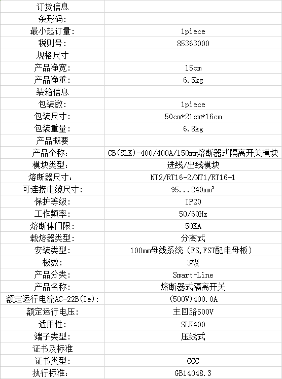 條形隔離開關 CB(SLK)-400